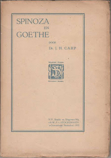 Zoals Carp het heeft over "het probleem ‘Spinoza – Goethe’," zouden wij zo’n onderwerp tegenwoordig niet meer aanduiden. Er is echter wel ‘het probleem Carp’: de Spinozist die tevens NSB’er werd. Daarover had ik eerder een aantal blogs3), waarbij ik de conclusie kon trekken dat het nog altijd boeiend en leerzaam is, van zijn serieuze en deskundige omgang met en verwerking van Spinoza kennis te nemen. Welnu dat geldt ook voor dit boekje. Carp geeft een heel eigen en zinnige beschouwing over de interesse van Goethe in Spinoza. Hij ziet grote verwantschap, een ‘gemeenschappelijke richting van denken’, zoals hij het noemt, bij Goethe en Spinoza.