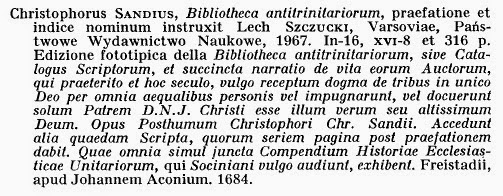 17 C. Sandius, Bibliotheca antitrinitariorum, 147-48.