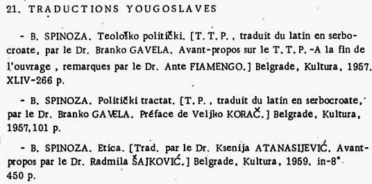 In 1970 verscheen bij KULTURA BEOGRAD deze uitgave van de Etika, 480 bladzijden [van hier; de aanbieder geeft niet de vertaler of bezorger, maar dat zullen de hierboven vermelden wel zijn].