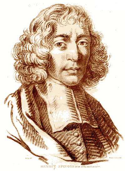 Rudi Ekkart schrijft in "Spinoza in beeld" [in: De steen vliegt,Arti et Amicitae e.a., Amsterdam, 1997, p. 145] dat in de achttiende eeuw een flink aantal prenten met beeltenis van Spinoza in Nederland en Duitsland vervaardigd werden, die i.h.a. met meer of minder vrijheid teruggingen op het Opera posthuma-portret. Eén daarvan is dus deze, die je erg veel gebruikt ziet worden als cover-illustratie.