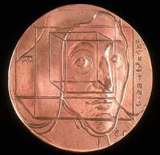 Penning van Spinoza, in 1979 in koper gemaakt door Charlotte Engels in een oplage van 100 stuks voor CFM (Club Français de la Médaille) . Diameter: 79mm (±3") gewicht: 240gr (±9oz) Edge/Relief: 6mm