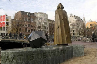 Op 24 november 2008 werd op de Zwanenburgerwal in Amsterdam dit Spinoza Monument van Nicolas Dings onthuld. Foto Branko Collin op Flickr.com