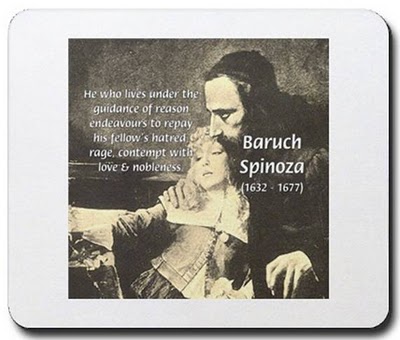 Of de enige echte "Spinoza Ethics Philosophy Teddy Bear"... of de Spinoza muismat met de tekst: "He who lives under the guidance of reason endeavours as much as possible to repay his fellow’s hatred, rage, contempt, etc. with love and nobleness."