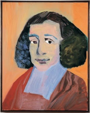 Tussen de afbeeldingen dit Spinoza-schilderij, olieverf op doek uit 1999, dat zich in een particuliere collectie bevindt.
