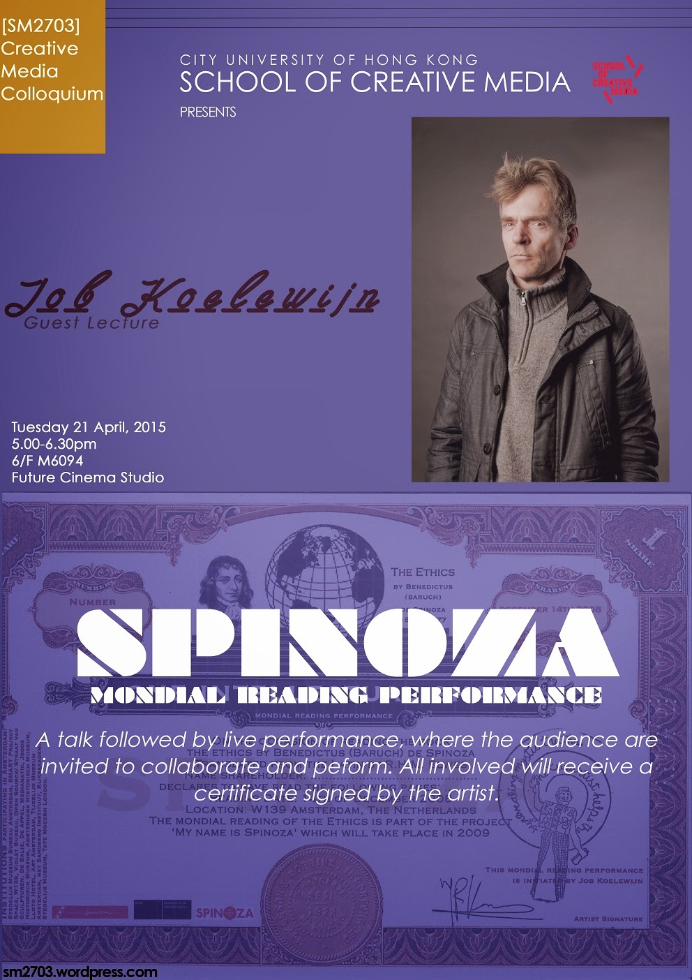 Gisterenavond vond in het Mednarodni Graficnem Likovni Center (MGLC) [Het International Graphic en Visual Arts Center] in Ljubljana, Slovenië, de première plaats van Spinozova leca [Spinoza's lens], een drama, performance en installatie over Spinoza’s leven en filosofie van de Sloveense Barbara Novakovic Kolenc. [Cf. en cf.]Het betrof een idee van Barbara Novakovic Kolenc, dat de schrijver en regisseur van het stuk, opdeed in een gesprek met Spinoza-auteur Goceja Smilevski.