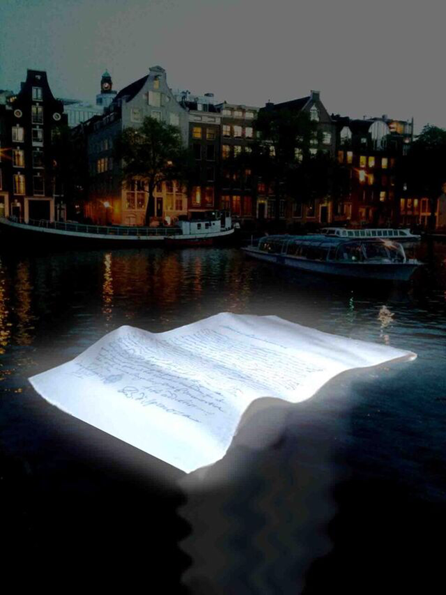 De Spaanse kunstenares Darya von Berner liet zich voor het Amsterdam Light Festival inspireren door de brief die Spinoza aan Lodewijk Meijer schreef over de redactie van zijn Renati Des Cartes Principiorum Philosophiae & Cogitata Metaphysica. Het was de aanhef, zo lezen we op de infopagina “amice suarissime - beste vriend,” die haar vooral aansprak [maar wat jammer nou van die fout, want er staat Amice Suavissime - “liefste vriend”, vertaalt Akkerman. Cf. hier die brief].