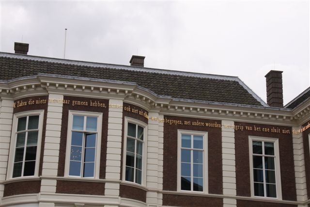 Teksten van Spinoza op gebouw Raad van State