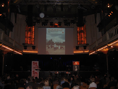 Foto-impressie van de ter gelegenheid van de 376e geboortedag van Spinoza vandaag in Paradiso te Amsterdam gehouden bijeenkomst, die de Amsterdamse Spinoza Kring tot een jaarlijkse gebeurtenis wil maken. Thema: Vrij zijn, hoe doe je dat?