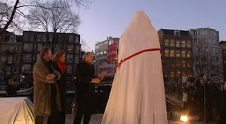 Het beeld werd vervaardigd door kunstenaar Nicolas Dings. In geen enkele krant (althans op hun websites) is hierover iets te lezen, waaruit maar weer blijkt met hoe 'n klein-nieuws we ons hier bezig houden. Alleen het gratis verspreide Dag gaf er aandacht aan - met een korte video op z'n website.