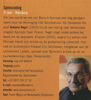 De website van de Ver. Het Spinozahuis heeft deze informatie nog niet, maar Filosofiemagazine dat ik zaterdag ontving, bracht ondermeer dit berichtje: