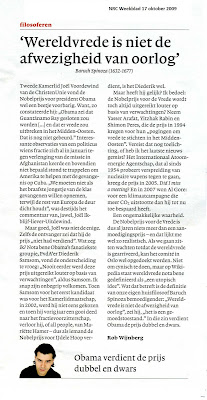 Wim Klever stuurde mij de column van Rob Wijnberg toe, waarbij onder het bijna-citaat in de kop de naam van Spinoza opvalt, niet met de voornaam die hijzelf gebruikte. Maar goed, daar staan z'n data weer eens vermeld. [Klik op de tekst om te vergroten]. Daarna volgt het commentaar van Wim Klever.