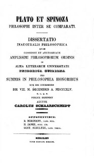 Ondanks geringe informatie is mij wel duidelijk geworden – en daarvan zal dit blog getuigen – dat hij zich behoorlijk intensief met Spinoza heeft bezig gehouden. Ook kwam ik nog tegen dat Friedrich Nietzsche in de zomer van 1865 aan de Universiteit van Bonn les kreeg van deze Carl Schaarschmidt, n.l. cursussen Allgemeine Geschichte der Philosophie en Platos Schriften und Philosophie. [Hier]