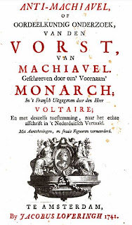 Ik durf de Menschelykheit, tegens een Gedrogt, dat dezelve wil vernielen, verdedigen; ik durf de rede en de regtzinnigheit, tegens de verleiding, en het misbedryf stellen; hier toe heb ik myne Aanmerkingen over Machiavel gewaagt, Hooftstuk tegen Hooftstuk, op dat het tegengif, by het vergif gevonden wierde." [books.google]
