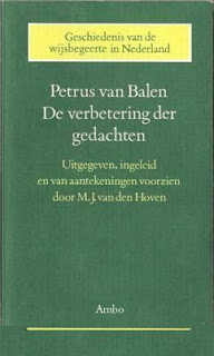 Doordat Henri Krop in de derde en laatste bijeenkomst over de TIE naar Petrus van Balen’s boekje “De verbetering der gedachten” verwees, heb ik antiquarisch de uitgave van de herontdekker M.J. van den Hoven aangeschaft (Ambo reeks: ‘Geschiedenis van de wijsbegeerte in Nederland, Baarn, 1988).