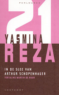 Het is een dun boekje, bestaande uit acht door een viertal personages tegen elkaar gehouden monologen, die lezen als toneel. En het is blijkbaar ook toneel. Aan het eind vraagt de vertaler, die bij gebreke van een vrouwelijk equivalent voor psychiater de psychiater uit de Franse tekst in psychologe heeft gewijzigd: ”Bij een eventuele toneeluitvoering wordt de regisseur verzocht de psychologe weer te vervangen door een psychiater.” Is dat omdat de vier personages uit twee mannen en twee vrouwen bestaan? Eerder is Yasmina Reza’s Dans la luge d'Arthur Schopenhauer (2005) in het Duits vertaald als Im Schlitten Arthur Schopenhauers: Ein Theaterstück (2006). In 2010 is het als deel 21 in de reeks Perlouses, Franse korte verhalen en essays van Voetnoot, uit het Frans vertaald door Martin de Haan, uitgebracht als In de slee van Arthur Schopenhauer [ISBN 9789078068 372]