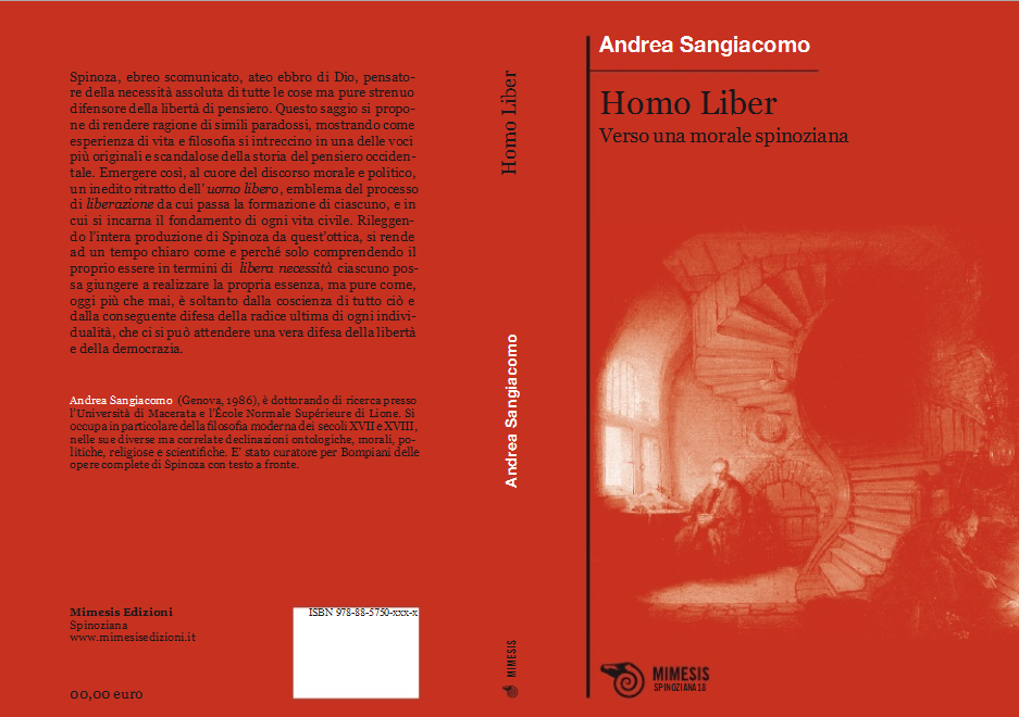 Nu zie ik (via de AAS) dat er al geruime tijd een interessante reeks bestaat, Spinoziana, onder redactie van Mino Chamla, Roberto Diodato e Vittorio Morfino. Aardig vormgegeven ook. Kom hier eens om zo'n reeks.Onlangs verscheen het 18e deel: Andrea Sangiacomo, Homo liber. Verso una morale spinoziana. Vele eerdere delen uit die reeks kregen een prijsverlaging. Zie uitgeverij Mimesis.