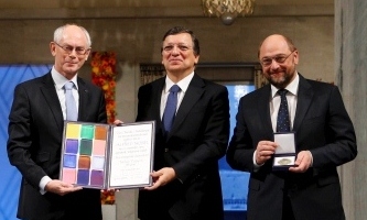 Gisteren namen de toppen van EU de Nobelprijs voor de vrede in ontvangst. Het Nobelcomité had die prijs toegekend vanwege de rol die de EU heeft gespeeld in het bevorderen van de vrede en de mensenrechten, na de verwoestingen van de Tweede Wereldoorlog.Je moet ervoor bij Duitse media zijn om te lezen hoe José Manuel Barroso, voorzitter van de Europese Commissie, (of eerder de schrijver van zijn toespraakje) een eigen Spinoza-citaat in elkaar knutselde: