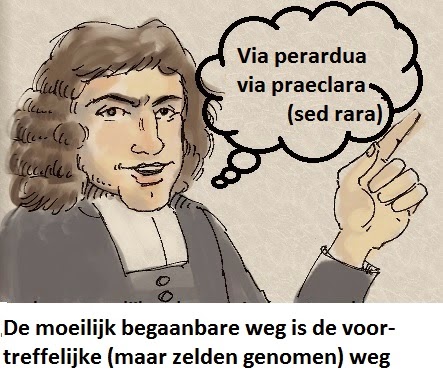 Spinoza gaat het – ondanks zijn caute dat velen als zijn lijfspreuk zien – om het ware en voortreffelijke dat zeldzaam is.