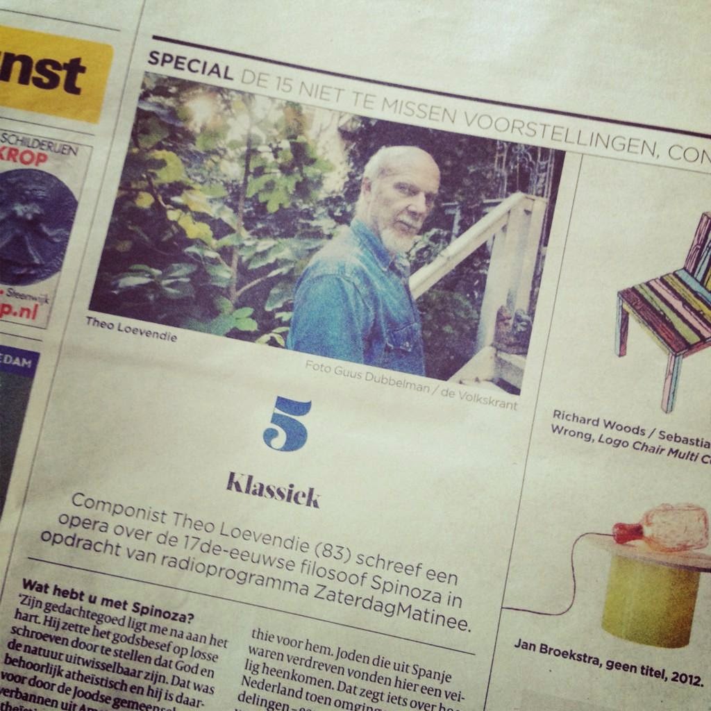 Vandaag over drie weken, op 11 oktober 2014, zal in het Concertgebouw de première zijn van de Spinoza-opera van Theo Loevendie The Rise of Spinoza - In opdracht van NTR ZaterdagMatinee. [Er zijn nog een paar kaarten]