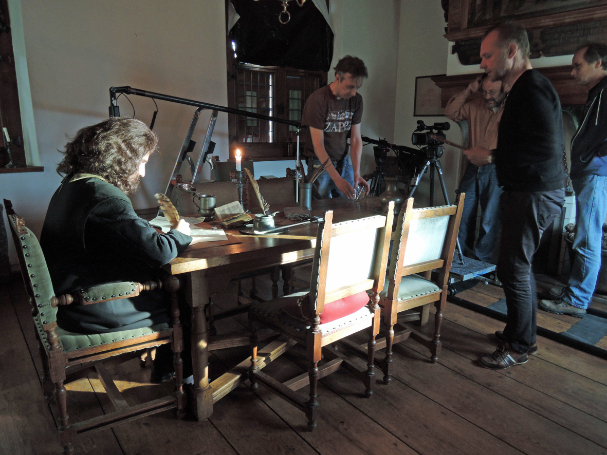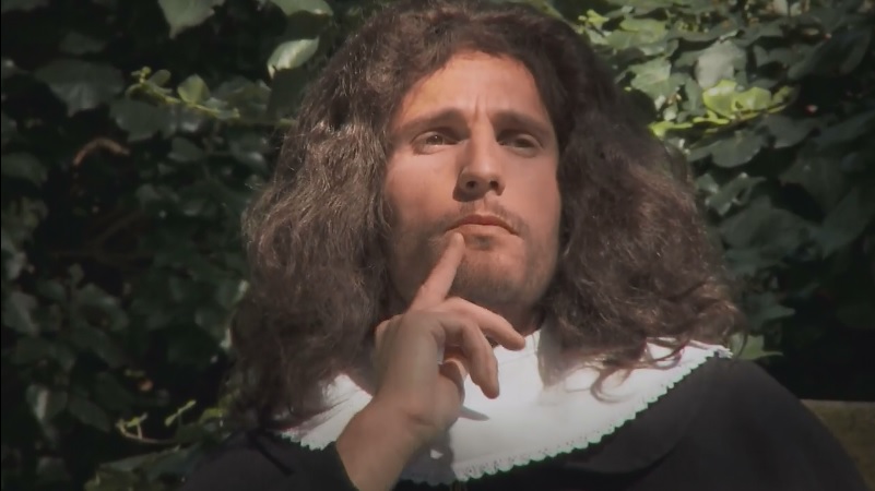 Van der List nam niet de moeite om de naam van Rowin Prins te vermelden, maar geeft als onderschrift bij deze foto: “Acteur die Spinoza speelt, komt vooral zwijgend in beeld.”