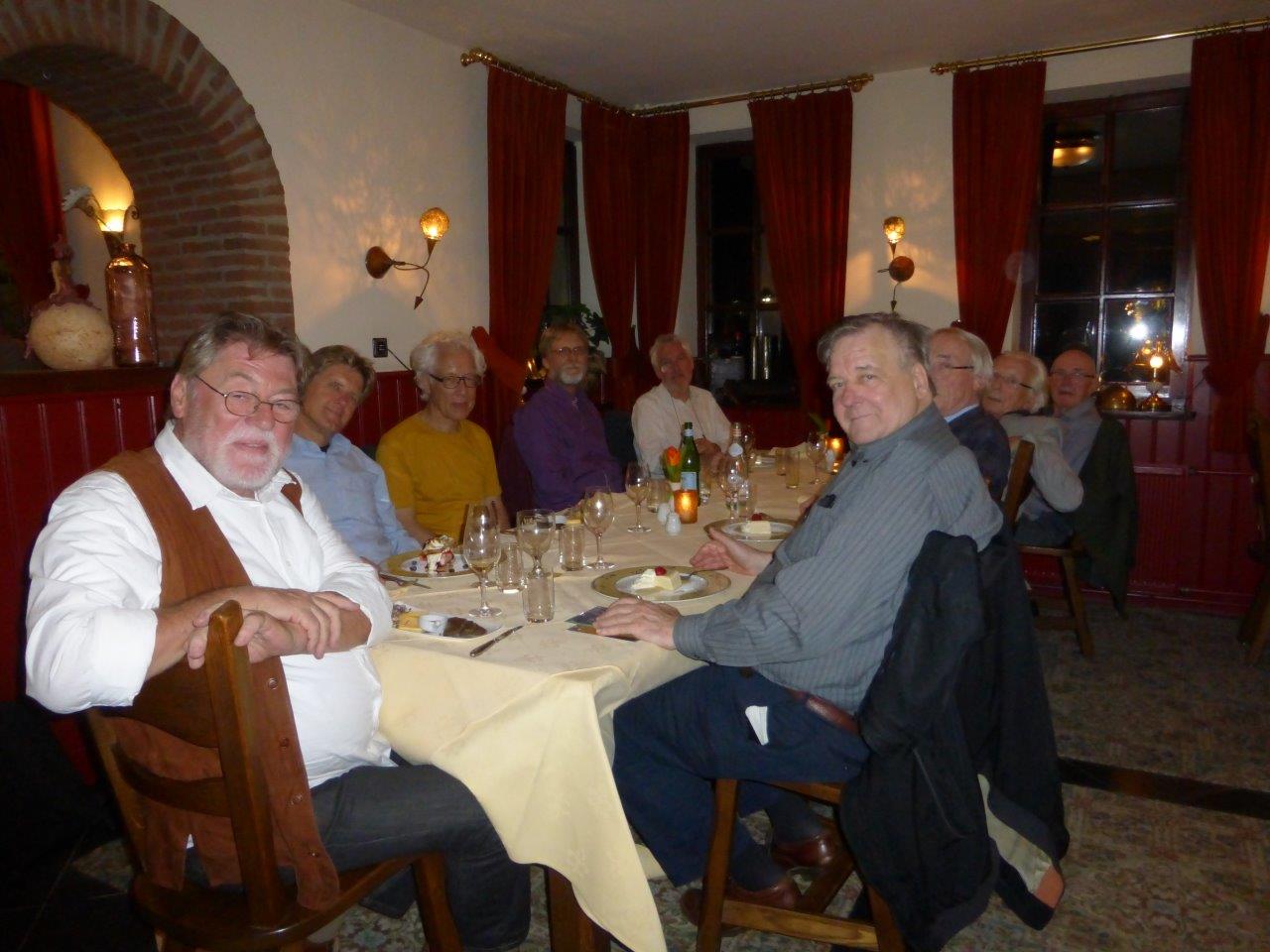 Wat de Spinoza Kring Limburg hier doet moge duidelijk zijn: éénmaal per jaar beoefenen we de aanbevelingen van Spinoza in Ethica 4/45s. Ook dit zijn oefeningen in wijsheid op z'n tijd. De SLK die - louter toevallig - uit louter mannen bestaat is - op één na die medische behandelingen ondergaat - voltallig aanwezig. De gespreksonderwerpen hadden - hoe kan het ook anders - in het algemeen iets te maken met Spinoza (maar de sfeer bleef passend luchtig: aantekeningen hoefden er niet bij gemaakt te worden).