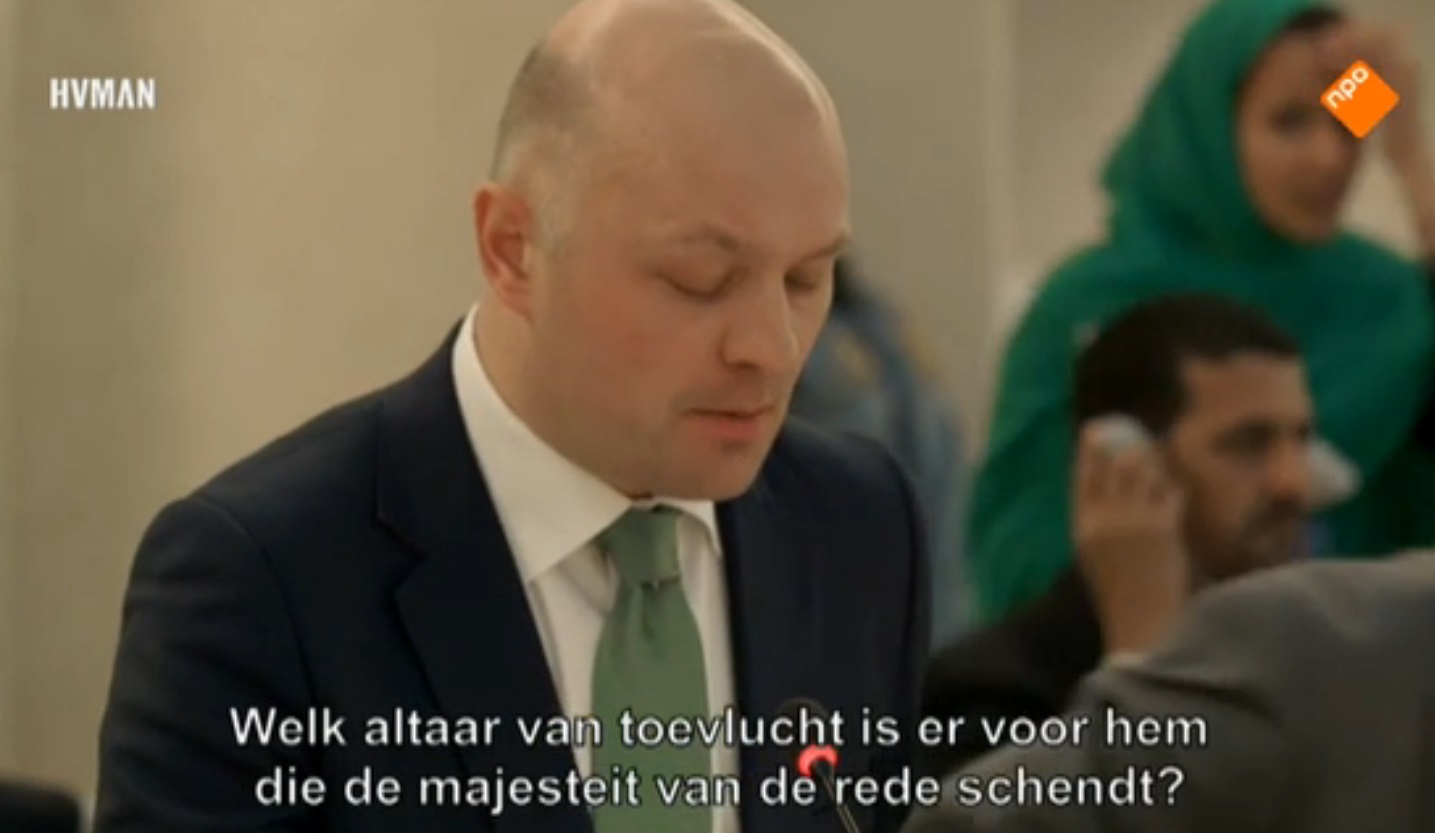 Het was de vertaling van zoals hij het uitsprak: “What altar of refuge can a man find for himself when he commits treason against the majesty of reason?” [Zie de toespraak op het blog van Boris van der Ham van 13 maart 2015: “Van der Ham speaks in Human Rights Council”]