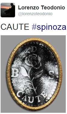 Waarom dit getwitterd weet ik niet, er stond verder niets bij, maar inderdaad Spinoza's caute-zegelring kún je een gouden randje geven. Ik denk niet dat het van hem had gehoeven (cf. begin van de TIE].