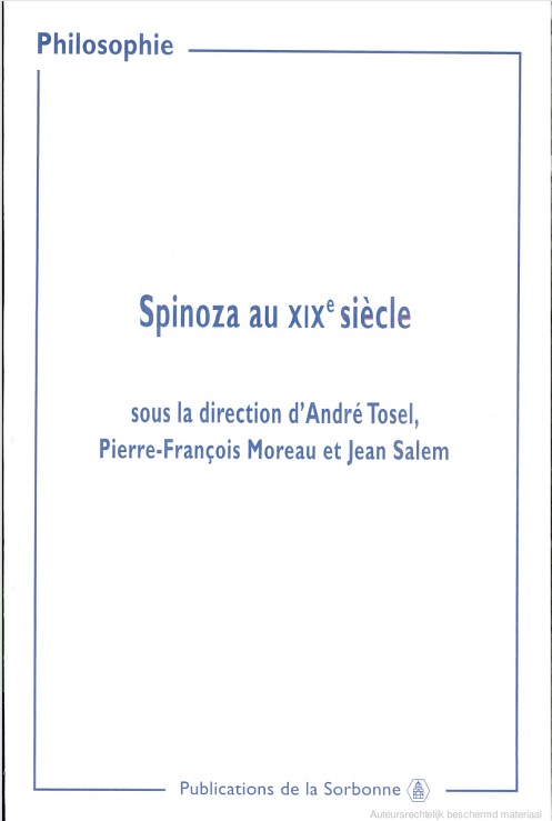 André Tosel, Pierre-François Moreau et Jean Salem (dir.), Spinoza au XIXe siècle [Actes des journées d’études organisées à la Sorbonne - 9 et 16 mars, 23 et 30 novembre 1997]. Publications de la Sorbonne, 2008 [18-12-2014 Publication sur OpenEdition Books] – books,google