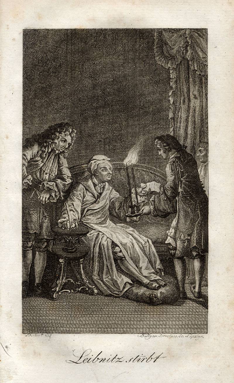 stirbt. Aus: Johann August Eberhard: Gottfried Wilhelm Freyherr von Leibnitz.