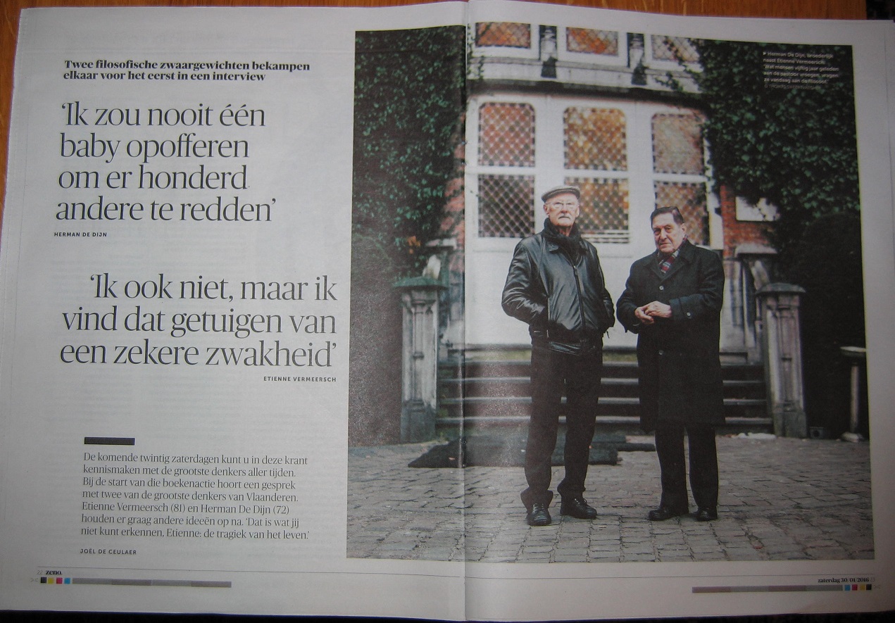 Naar aanleiding van een tip van René Budts, kan ik doorgeven dat de Belgische krant De Morgen vandaag een door Joël De Ceulaer afgenomen dubbelinterview heeft met de Belgische emeriti filosofieprofessoren Herman De Dijn & Etienne Vermeersch:
