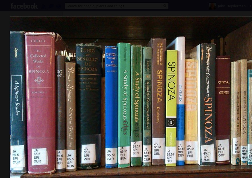 Dit plaatje neem ik over van de website van John Heyderman, "a former librarian from London, who studied philosophy at Birkbeck College, University of London, and wrote his dissertation on Spinoza and Davidson on the mind/body problem." Hij heeft er niet veel, maar wel een paar aardige blogs over Spinoza. Zoals o.a. "A man of substance" [cf.]. De weg erheen wil ik hier even vastleggen.