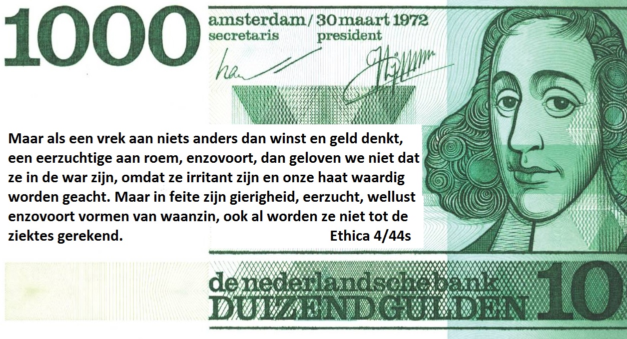 Gisterenavond bespraken we met onze Spinoza Kring Limburg het 8e hoofdstuk van Spinoza’s Staatkundige verhandeling in de vertaling van Karel D’huyvetters. We waren het er met z’n allen over eens dat wat Spinoza voorstelde over de inhoud van de eed eigenlijk heel nuttig in Nederland zou kunnen worden ingevoerd om in de plaats te laten komen van de eedformules “Zo waarlijk helpe mij God almachtig” en het wat slappe “Dat beloof ik” resp. “Dat verklaar ik.”
