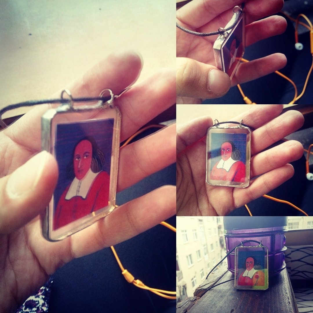 Via een tweet van de Turkse Ebru Ulutas over een verloren geraakte ketting ("bu kolyem kayboldu") blijkt dat – minstens - één van de vijf schilderijen die Sarah Yu Zeebroek in 2008 voor NRC-Handelsblad maakte [cf. blog van 05-07-2008], in Turkije als hangertje terecht was gekomen – of misschien wel daar werd gemaakt.