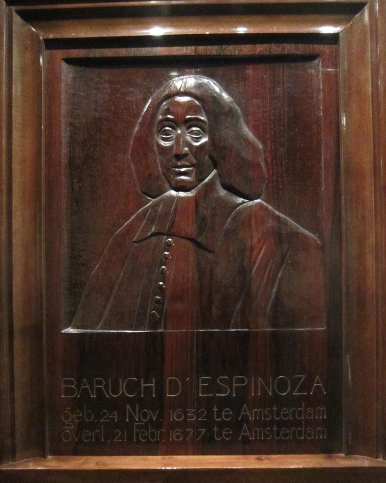 Het houten Spinoza-reliëf dat Lambertus Zijl (1866 - 1947) ca 1920 maakte