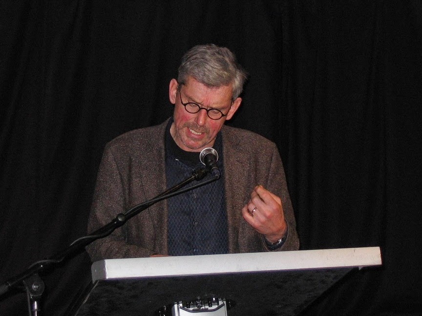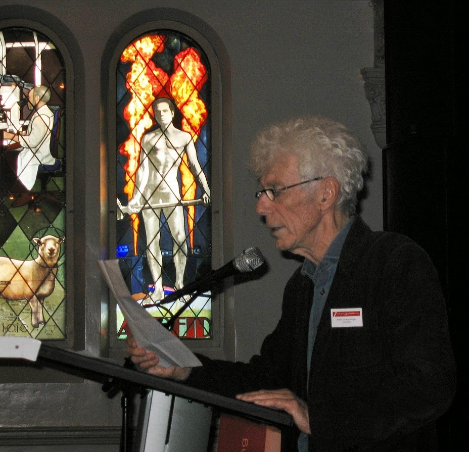 Toen Frank van Kreuningen, de voorzitter van de Amsterdamse Spinoza Kring, om 12:00 uiur iedereen welkom heette, kwam hij met een aangename verrassing voor deze blogger. Na de sprekers genoemd te hebben heette hij mij apart welkom en roemde hij mijn werk aan dit Spinoza-blog. Het bracht de zaal zelfs tot een de waardering onrstrepend enthousiast applaus dat door ondergetekende uiteraard dankbaar in ontvangst werd genomen. Zo'n erkenning viel dit blog nog niet eerder ten deel. In de pause kwam een aantal mensen het adres van het blog vragen.