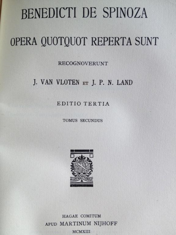 Zo is in Heidi M. Ravven & Lenn Evan Goodman (Eds.), Jewish Themes in Spinoza's Philosophy [SUNY Press, 2002] te lezen: “All references to Spinoza's works will be to the J. Van Vloten and J. P. N. Land Benedict de Spinoza opera quotquot reperta sunt. edition of Benedict de Spinoza: Opera, 3rd ed., 4 vols.”