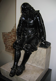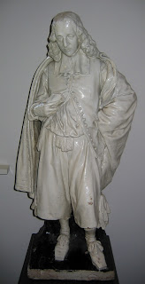 Ik was al een paar maal tijdens de renovatie in het huis geweest, nu zag ik het voor het eerst in z'n nieuwe aankleding. Het zag er verrassend interessant uit: diverse beelden aan de wanden, presentatiekasten met diverse uitgaven van de boeken van Spinoza en andere spinozana diversa. En imposant uiteraard het pièce de résistance: de kast met de gereconstrueerde bibliotheek van Spinoza. Uiterst kostbaar nu, al deze 17e eeuwse boeken. Wat zou je er graag eens in grasaduinen, maar zeer begrijpelijk dat dát echt niet kan. Die onaanraakbaarheid maakt het wel een bijna sacrale kast...