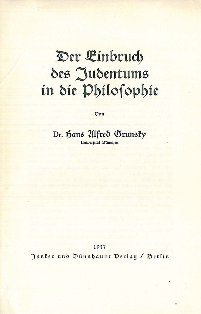 Om een indruk te krijgen hoe die man bezig was: In zijn Der Einbruch des Judentums in die Philosophie (1937) - hierna méér hierover - schrijft hij b.v.: "noch jeder nichtjüdische Denker habe seinen judischen Imitator gefunden, es habe