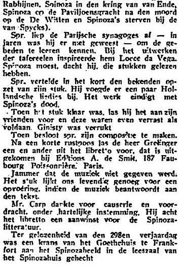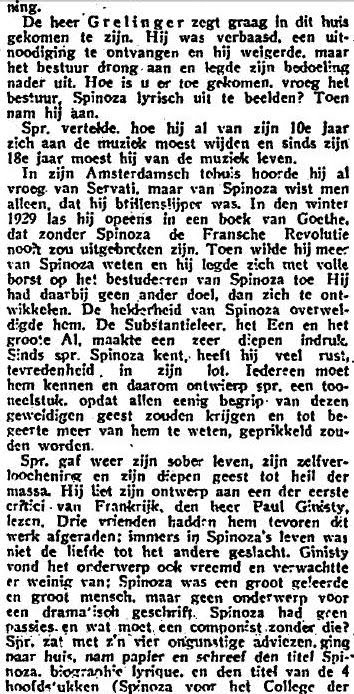 De aanleiding dat ik hier een blog over hem maak is de ontdekking in het boekje over Spinoza’s sterfhuis dat ik gisteren aanschafte (zie hier) dat hij een suite voor piano, gewijd aan Baruch de Spinoza, componeerde. Op p. 66 is in dat boekje te lezen: “In de gebruikelijke 24 november-samenkomst van ditzelfde jaar [1930] droeg de in Frankrijk wonende toonkunstenaar Charles Grelinger enige passages voor uit zijn libretto Spinoza, een lyrische biografie."