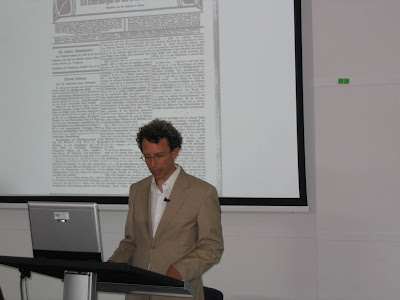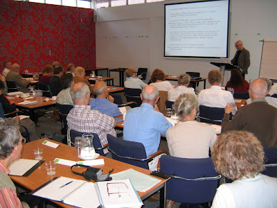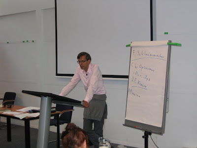 Dinsdagochtend verzorgde dr. Henri Krop de inleiding onder de titel: Spinoza in (ex-)dominees land (1830 - 1880). De opvatting dat de kritiek van Bernard Nieuwentijt (dat Spinoza de geometrische methode niet op de werkelijkheid toepast) de doodsteek zou hebben gegeven aan interesse voor Spinoza in de 19e eeuw, klopt niet volgens Krop. Ook bestrijdt hij de benadering van Siebe Thissen dat de Spinoza-interesse zich in die eeuw vooral ondergronds (via de Vrijmetselarij) zou hebben afgespeeld. Tot 1870 was Nederland een van de godsdienstigste landen van Europa, waarbij Spinoza als tot een nieuwe religie kon uitgroeien. De spreker behandelde Hegel, Schleiermacher, David Friedsrich Strausz, Heinrich Heine, Cornelis Willem Opzoomer, Dionysius Burger, Johannes van Vloten en diverse anderen. De oprichting van het Haagse Standbeeld (onthuld in 1880), de uitgave van de tweededlige Opera Omnia samen met J.P.N. Land (1882/83) enzovoorts. Mijn tien A4-bladzijden aantekeningen, kan ik hier niet even kort samenvatten. Het was veel...