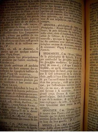 In het lemma ‘Spinozisme’ maakt Diderot een onderscheid tussen ‘oude Spinozisten’ en ‘moderne Spinozisten’. Hij geeft daarin alleen aan waarin de 'moderne' Spinozisten verschillen van de 'oude':