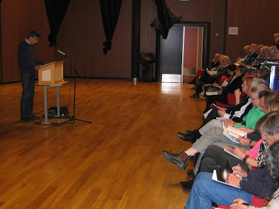 Verder hadden we een leuk gesprek met Henri Krop in de groep na de lezing, wat zeer verduidelijkend was. Ik heb dit weergegeven onder 'passage over wilsvermogen een duistere tekst?' Ging ook over Krop's Ethica-vertaling en de kwestie of Spinoza iets statisch heeft. Maar vooral over de verschillende interpretaties van 'rede'/'ratio' in de laatste eeuwen (namelijk, in Spinoza's tijd, MèT en, met ingang van het positivisme in de gedragswetenschappen, 18e eeuw, ZòNDER de EMOTIES). Dat Spinoza's wetenschappelijke methode van het vinden van de essenties, de 'Wesenschau' in de FENOMENOLOGIE, toentertijd tot de rede werd gerekend en nu wordt gezien als maffe vrouwen- methode (mijn woorden). Margreet Brandes