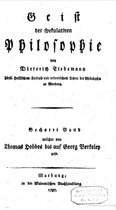 Dietrich Tiedemann (1748 - 1803) over o.a. Spinoza & Berkeley