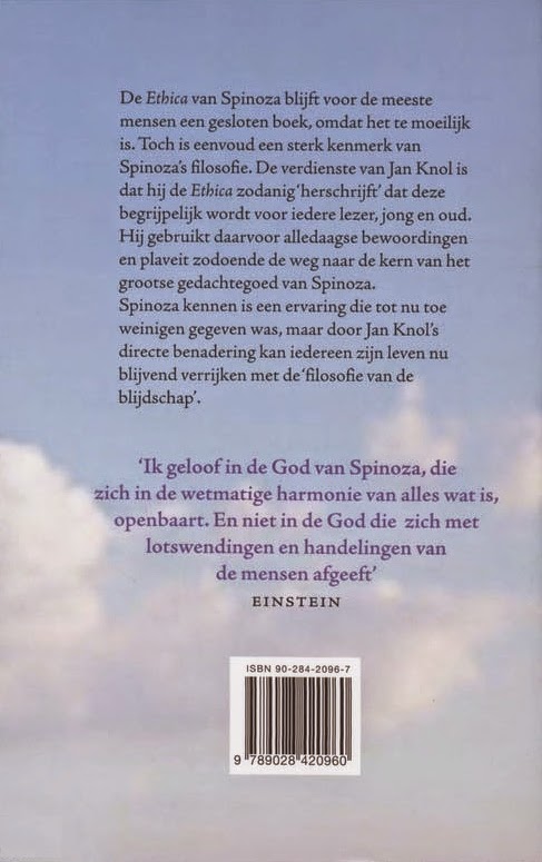 Dat zei hij ongeveer anderhalf jaar na het uitkomen van dit boekje, dat straks dus aan z'n 9e druk toe is. Hoeveel meer duizenden exemplaren zullen inmiddels in Nederland hun weg hebben gevonden? De Duitse Spinoza-Bibliografie heeft het niet opgenomen in de "officiële secundaire Spinoza-literatuur". Misschien moet de uitgever Knol's boekjes eens opsturen naar de Wolfenbütteler Bibliotheek die tegenwoordig die Bibliografie bijhoudt?