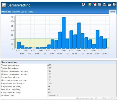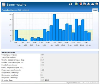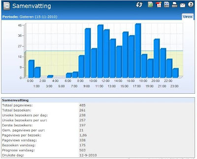 Ieder kan deze statistische gegevens bekijken door te klikken op OneStat.com helemaal aan de onderzijde van het weblog. In dit blog houd ik enige van deze gegevens vast om later nog eens te kijken hoe de verdere ontwikkeling is.