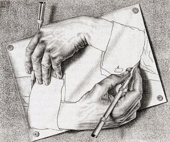 Zoals de bekende lithografie van Escher, Tekenen uit 1948. Kusters komt er zelf mee op blz. 621. Zoiets kan alleen maar als illusie op papier opgeroepen worden. Zo kan, vermoed ik, het in elkaar knutselen van filosofie uit waanzin en waanzin destilleren uit filosofie, wat Kusters hier allemaal op bijna illusionistische wijze klaarspeelt, wellicht ook alleen maar op papier – het papier van dit boek dat we in handen hebben. Maar lukt het ook in het echt? Kunnen we echt, in de realiteit, met zulk filosoferen uit de voeten? Ik kan dit niet beantwoorden (heb nooit zelf een mystieke ervaring gehad, of een psychose, ik werk niet in de psychiatrie en heb voor zover ik weet geen waanzinnigen in familie of kennissenkring). Maar deze vraag rijst wat mij betreft levensgroot op uit dit boek. Het zou me niet verbazen dat Kusters wellicht de Socratesbeker 2015 won juist vanwege het fascinerende van zijn exercitie, maar ook doordat hij als een illusionist zijn onmogelijke figuren voortovert en mensen in het mogelijk-zijn van het Magic Impossible doet geloven. In ieder geval gelooft hij het allemaal zelf.