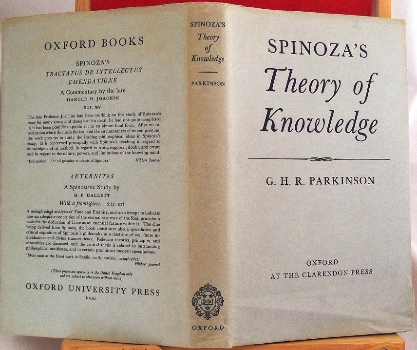 • Parkinson, G. H. R., "Spinoza: Metaphysics and Knowledge," in G. H. R. Parkinson (ed.), The Renaissance and Seventeenth Century Rationalism, Routledge History of Philosophy, Vol. 4 (London: Routledge, 1993), pp. 273-312.