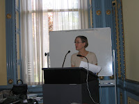 Marleen Rozemond die lang in de VS had gestudeerd en gedoceerd en dat tegenwoordig in Toronto Canada doet, voelde zich onzeker over haar Nederlands, dat ze overigens voortreffelijk sprak. Haar onderwerp was aangekondigd als: "Descartes en de eenvoud van de geest, maar werd: Descartes over de onsterfelijkheid van de ziel.” Hét punt was, voor zover ik het begrepen heb, dat Descartes die er zoveel werk van maakte te laten zien dat je natuurwetenschap kon bedrijven (en juist beter) zonder rekening te houden met de aristotelische hylemorfistische filosofie die alles beschrijft en verklaart uit het samenkomen van materie en vorm. Voor Descartes volstaat de natuurkunde met alleen de uitgebreidheid van de materie en de verschillende proporties van beweging en rust ervan.