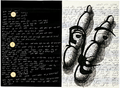 Pencil, ink, buttons and thread