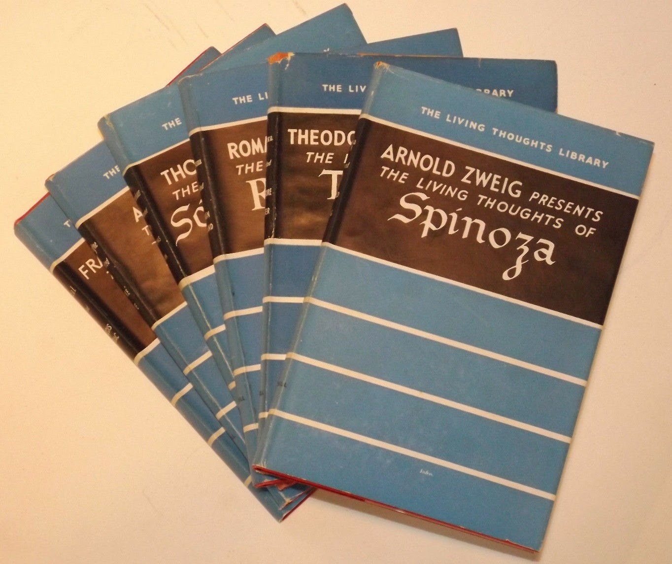 Zie hier de titels van de 21 delen van de reeks De levende gedachten van… die tussen 1939 en 1942 bij uitgeverij Servire ver scheen (bovenste foto van het eerste deel van de serie is ook van daar)
